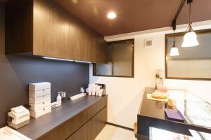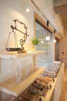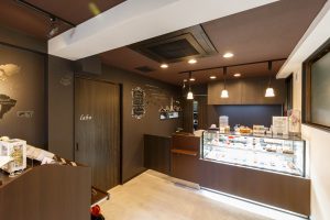 建築空間という「器」は蔵を連想させる和の雰囲気を基調とし、そこに、色彩豊かな洋菓子がアクセントとなっているというバランスを狙いました。