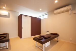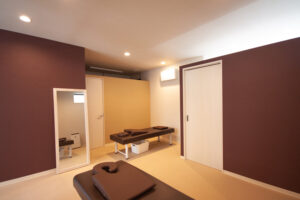 施主様のご希望で、お子さま連れのお母さまでも来院できるような温かな雰囲気の整骨院としました。