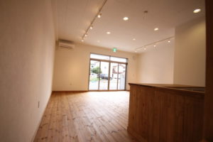 施主様のご希望で内装にはグレーをメインで使用し、女性だけでなく男性もお店に入りやすい空間に仕上げました。