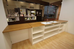 ショッピングモール内の工事はモール側と各種調整が必要ですが、数か月前からモール側とも打ち合わせを行いつつ無事に完成まで至りました。