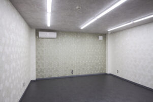 エアコンは天井吊りタイプ仕様のテナントになっていましたが、中央に天井カセット型として埋め込むことができたのでより効果的な冷暖房計画となりました。