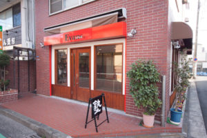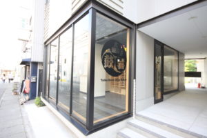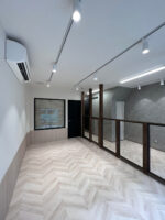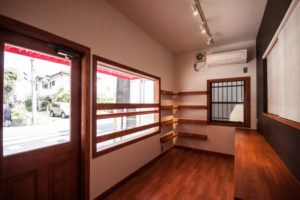 スタッフ及び商品の搬出入が頻繁ではあるものの、フロントのデザインを崩さない仕方で、出入り口をデザインしました。弊社にて新規店舗の為のロゴ及びフロントをデザインし、施工も行いました。