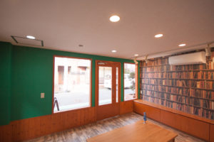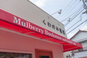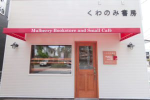 古い一戸建てのテナントを改装し、絵本とコーヒーを一緒に楽しめるブックカフェを設計施工しました。ファサードを一新した他、本棚もオリジナルのものを制作しました。看板に使用されているロゴも、桑の実とペラっと端っこのめくれた絵本をイメージしてデザインしました。