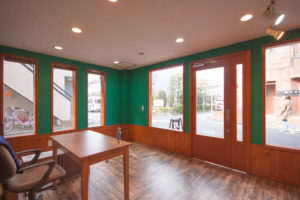 今回は一階に事務所を増設しました。外装で取り入れたデザインを反映させ、統一感のある空間に仕上がっています。