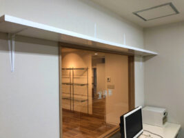 また調剤室内には機能面と,視線のコントロールのためにボックスカウンターを設置しました。