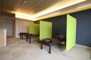 空間を柔らかく間仕切り、スペースを最大限用いながら互いのプライバシーを守っています。