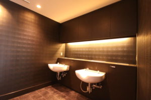 キーカラーは決まっており、白と赤の組み合わせでした。そこで、色は白でもいくつかの異なる素材で仕上げ、のっぺりした空間とせずに変化をつけました。赤のライン、赤のペンダントライト、少ない赤の量で、白の空間を守りながらしっかりとアクセントを残しました。