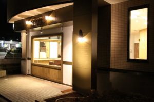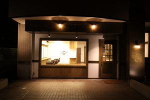 日が落ちてからの見え方も検討し、軒下に取り付けたスポットライトにより夕方の町で優しく光が灯るようにしました。