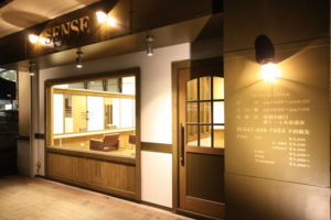 フロントデザインにはレトロな金属の質感をイメージとしたサインを制作し、マリンランプのきらめきも加味し、インパクトのあるものとなりました。これから時間を掛けて使い込むほど味が出る、という空間になりました。