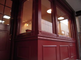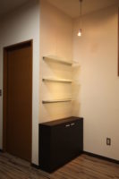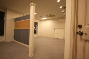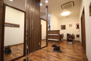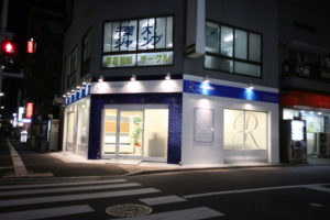 スタッフ及び商品の搬出入が頻繁ではあるものの、フロントのデザインを崩さない仕方で、出入り口をデザインしました。弊社にて新規店舗の為のロゴ及びフロントをデザインし、施工も行いました。