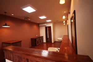 内装・家具(受付、棚)・看板・ロゴマークを弊社にてデザイン・施工。オーナーの要望や好みをしっかり反映しつつ、空間の統一性を保つようにデザイン。北欧テイストの照明や家具、色使いでまとめています。