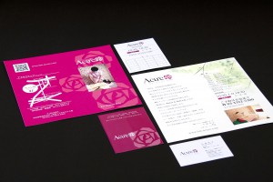 「浅草の和の文化に合うテイストにしたい」というご要望からよく打合せさせていただき、薄紅色とこげ茶、そしてアクセントにえんじ色の暖簾を組合わせた和カラーのコーディネートとなりました。「鍼」をモチーフにしたロゴデザインも行わせていただきました。