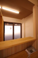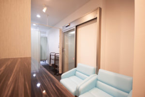 オープンな雰囲気で、一人一人とじっくり向き合うという明確な治療指針をお持ちの先生。内装はその指針を反映させるため、縦格子にての間仕切りを使用し、明確に治療スペースと待合いを区分しつつオープンな雰囲気を実現しました。弊社にてロゴ、看板、内装とトータルでデザイン及び施工を行いました。