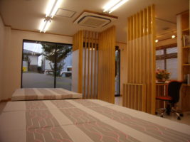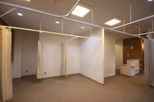 そして鍼灸と柔整の併設でしたので保健所の基準にかなう平面レイアウトとしました。
