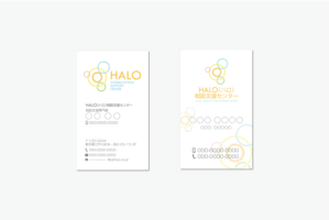 ロゴは,「太陽・中心に向かっていく・光の環・調和・虹・人との繋がり」というキーワードを頂戴し,そのイメージを反映しました。名刺に関しては,表は企業向けで,裏は利用者様向けにわかりやすいようにデザインしました。