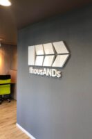 エントランスにはカルプ文字で会社のロゴを取付けしました。