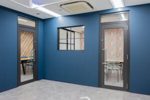 弊社WEBサイトとも雰囲気を統一させつつ、グレーを基調としたファサードデザイン及び内装コーディネートとしました。