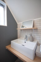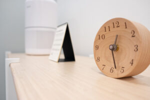 ホワイトをベースに、薄色の木目が醸し出す温かみとブルーグリーンがそっと彩りを添える空間、やわらかな間接光で、ほっと心が落ち着くような空間を目指しました。
