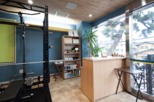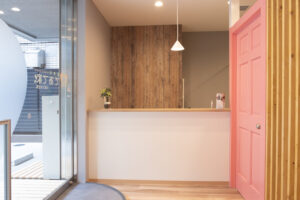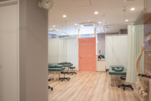 施主様のご希望で、お子さま連れのお母さまでも来院できるような温かな雰囲気の整骨院としました。