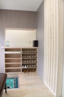 内部の格子と外部の格子はナチュラルな木目で統一しデザインアクセントとしました。