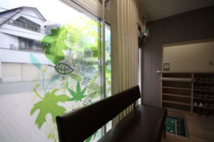 テナントの特長である大きなフロントガラスを最大限活かし、院のイメージを決めるグラフィックデザインを考案しました。